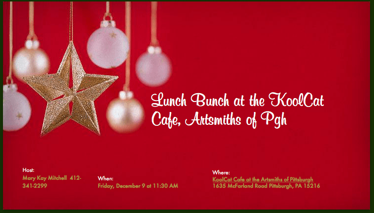 RSVP directly to evite or to Mary Kay Mitchell at mkaymitchell@verizon.net or 412-867-7362.