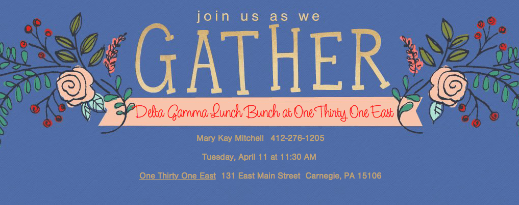 RSVP directly to evite or to Mary Kay Mitchell at mkaymitchell@verizon.net or 412-867-7362.