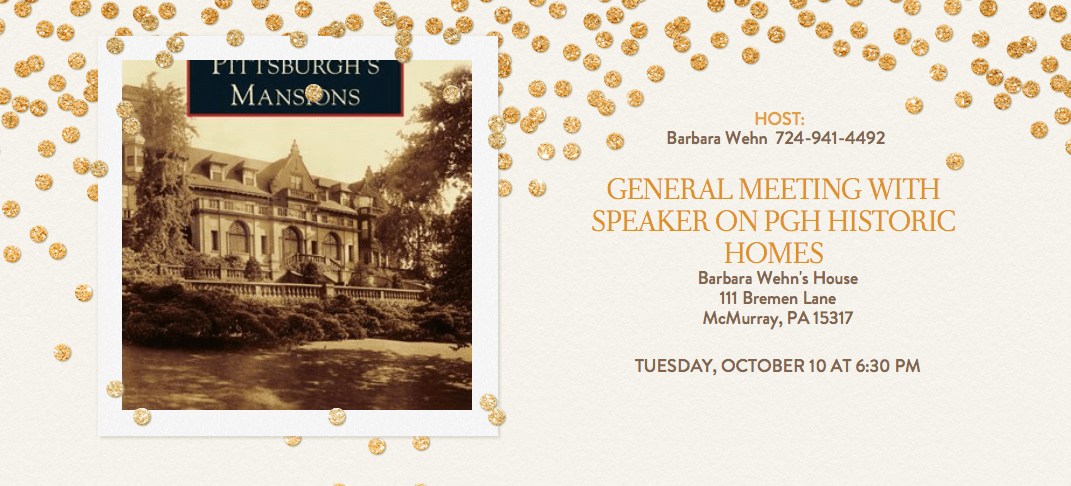 Join us for our GENERAL MEETING featuring guest speaker and author, Melanie Linn Gutowski who offers a peek back at the opulent homes of the city’s 19th century elite.