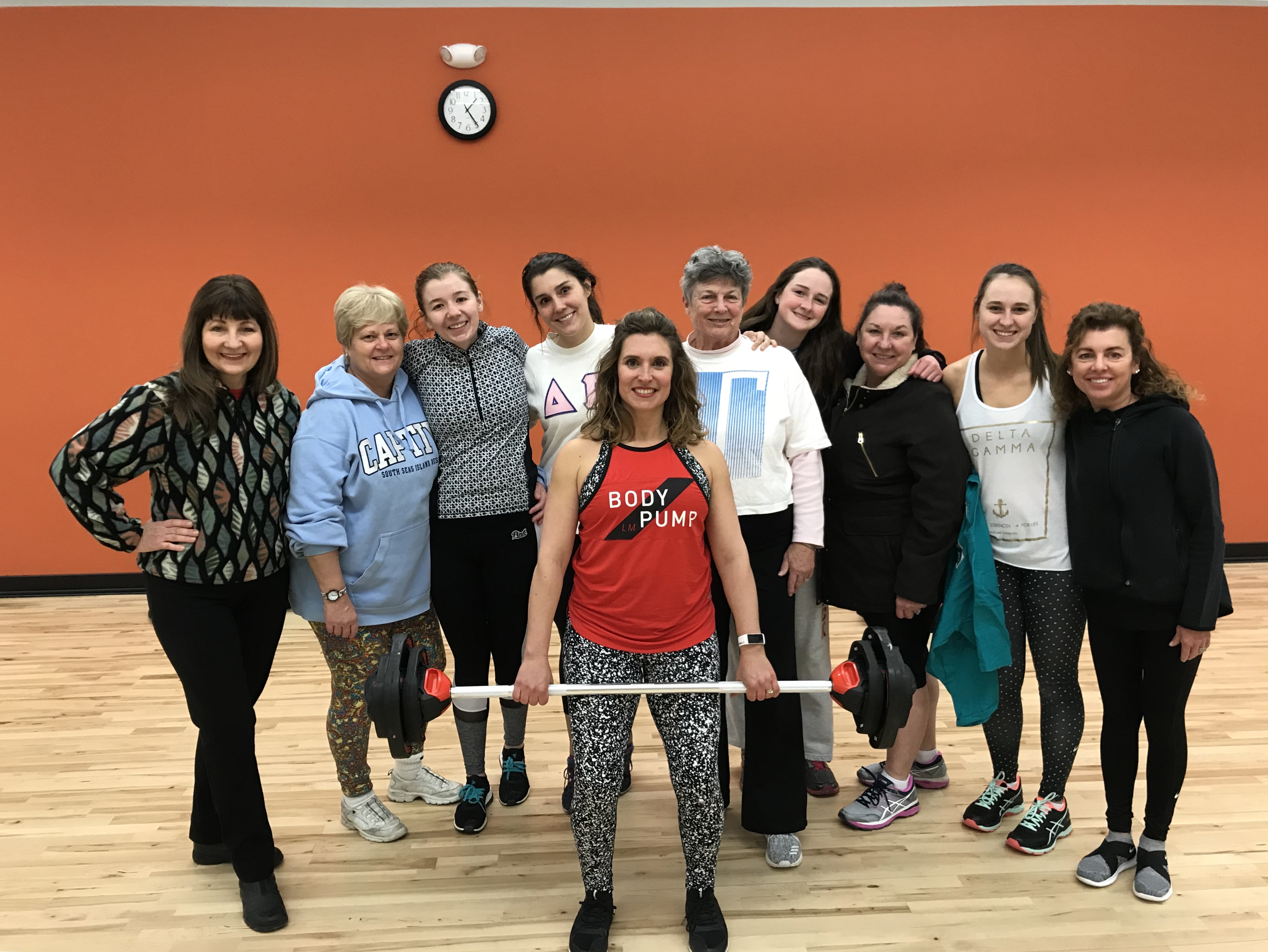 Carrie Knight (a DG Alum) lead the rest of the DG Alums in a Les Mills Body Pump and Body Flow workout at the new Spencer Family YMCA.
