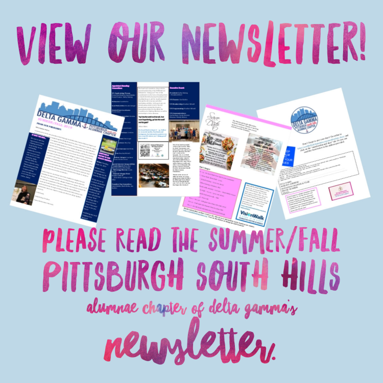 View the Summer/Fall 2019 Newsletter! Posted byPGH South Hills Alumnae ChapterAugust 25, 2019August 25, 2019Posted inAnnouncements Summer-Fall Newsletter.pdf Published by PGH South Hills Alumnae Chapter Welcome to the website of the Pittsburgh South Hills Alumnae Chapter of Delta Gamma. We have welcomed alumnae living in and around the South Hills of Pittsburgh since 1959! View more posts