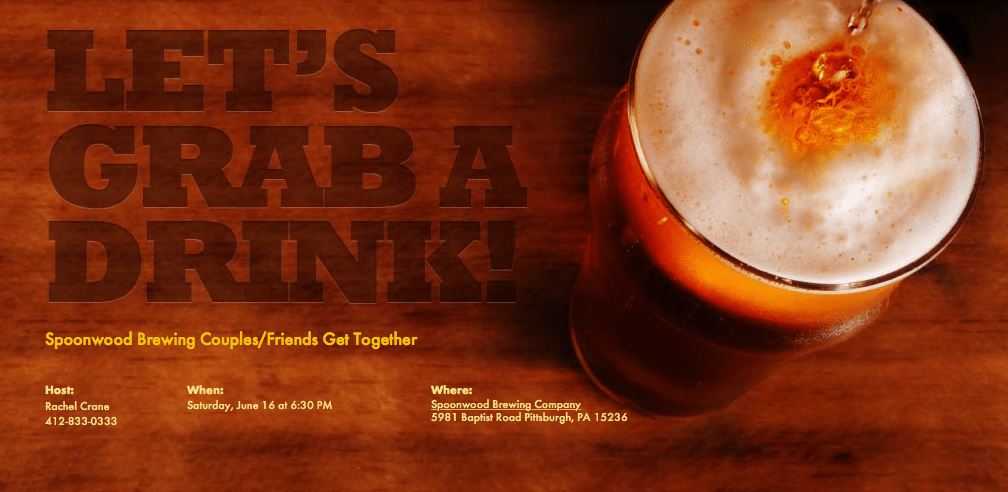 Hey DG’s….wanted to see what kind of interest there is in a Couples/Friends event at Spoonwoood Brewing in Bethel Park on Saturday, June 16th at 630P. It is on the schedule, but unfortunately, they do not take reservations…so we wanted to see if anyone is interested in meeting at 630P and hanging out and seeingContinue reading “Spoonwood Brewing Couples/Friends Get Together”
